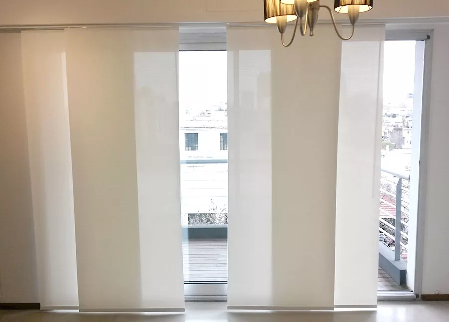 El Panel Oriental está compuesto por paneles verticales de tela de ancho variable sostenidos por un perfil de aluminio con vías que permite la superposición parcial o total de los paneles. Sus posibilidades invitan a jugar con la iluminación y obtener distintos niveles de transparencia y opacidad.