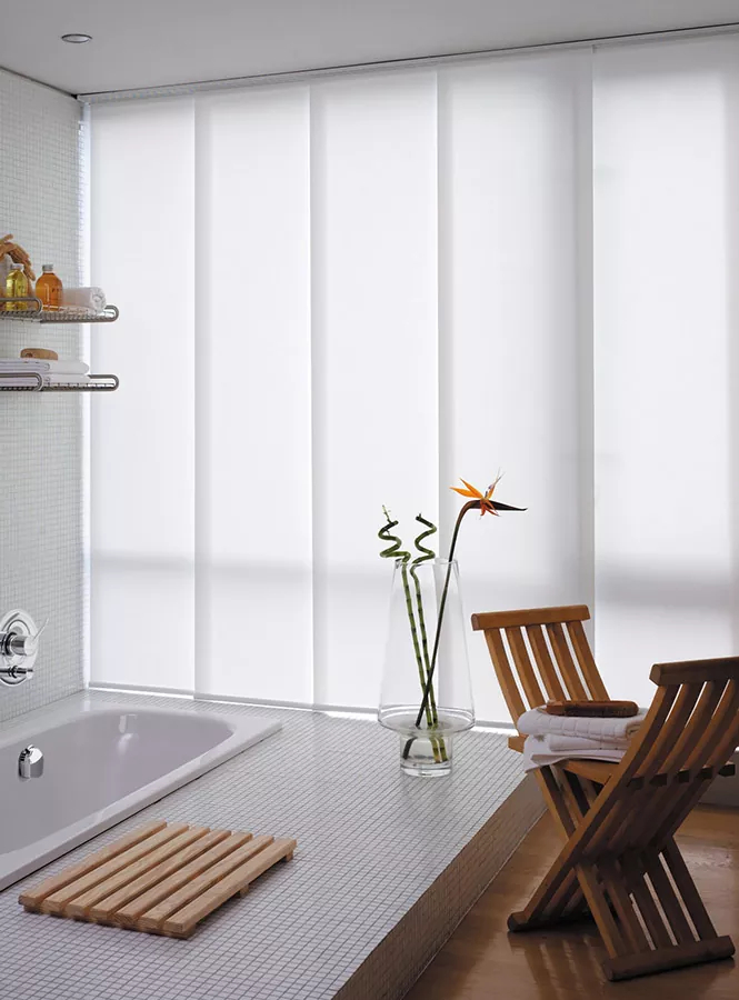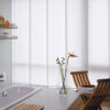 El Panel Oriental está compuesto por paneles verticales de tela de ancho variable sostenidos por un perfil de aluminio con vías que permite la superposición parcial o total de los paneles. Sus posibilidades invitan a jugar con la iluminación y obtener distintos niveles de transparencia y opacidad.